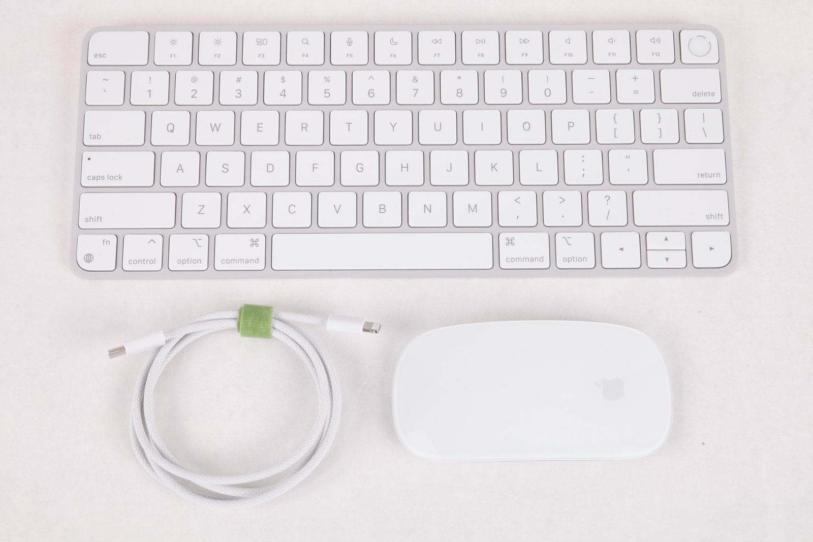 Silver Apple Magic Keyboard W/Touch ID, Silver Magic Mouse, Silver Braided Cable
