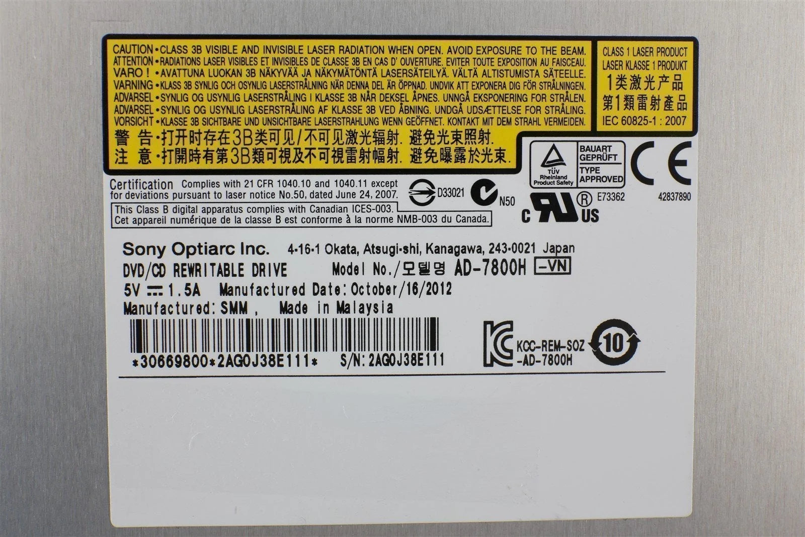 Apple iMac 27" A1312 Late 2009 Sony AD-7800H DVD optical drive