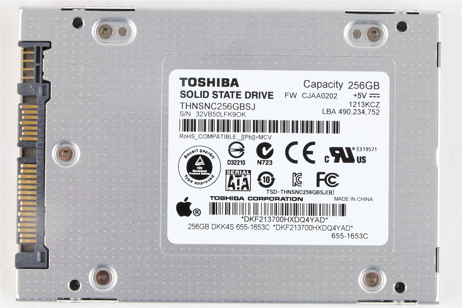 This sale is for Apple Toshiba 2.5" SSD 256GB THNSNC256GBSJ Internal Solid State Drive - 655-1653 it will be delivered as pictured.